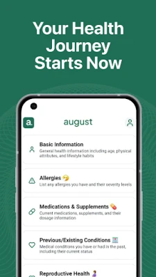 August is not a substitute for professional medical care, but it can empower you to make informed decisions and support your well-being. Start your journey toward better health with August—your caring, AI-driven companion.