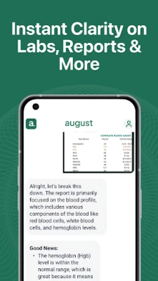 August is not a substitute for professional medical care, but it can empower you to make informed decisions and support your well-being. Start your journey toward better health with August—your caring, AI-driven companion.