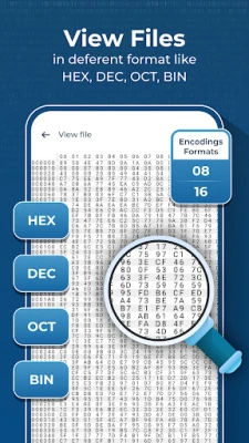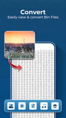 Easily read and view binary files with this app! you can also read binary data of any files like images, videos, audio,document.