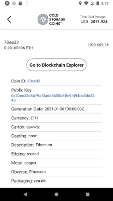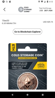Blockchain Mint manufactures an easy to use crypto cold storage wallet for Bitcoin, Ethereum, Litecoin, Cardano, Bitcoin Cash and a few other digital currencies. Our app doesn't do much - but it does verify the authenticity of your coin, show you the balance, and coming soon, will help you add & redeem value. Give us feedback on what we can do better and we're on it! Thanks and enjoy!