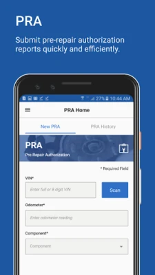 • Pre-authorize specific warrantable repairs (PRA) • Use photos to improve efficiency of the Part Return Process (PPR) • Send part information for traceability (RPT) • Submit detailed Field Product Reports (FPR) • Lookup and view recalls on vehicles (Recall) • Access the Service Workbench