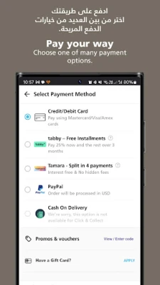 Buy Now, Pay Later (BNPL) and divide your purchases into 4 interest-free payments when using Tabby or Tamara! We also offer installments through selected banks.