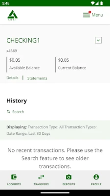 • Check your latest account balance and search recent transactions.