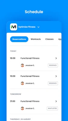 For members of Optimize Fitness to reserve their place in a class, sign up for gym events, and general account management like updating headshots and credit card on file.