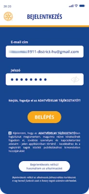 Az alkalmazás - korlátozott funkciókkal (például: a klubok információinak megtekintése céljából) regisztráció nélkül is elérhető.