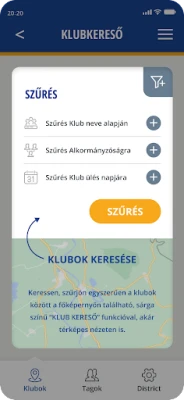 Ám ennél sokkal többre is képes az alkalmazás! A kereső funkción keresztül név, cégnév, cím, klubok, tisztségek, kategóriák alapján tudunk szűrni, de szabadszavas kereső is rendelkezésünkre áll. Az alkalmazás a klubokat átlátható térképen jeleníti meg, ahol minden fontos adatot is megtudhatunk az adott klubról.