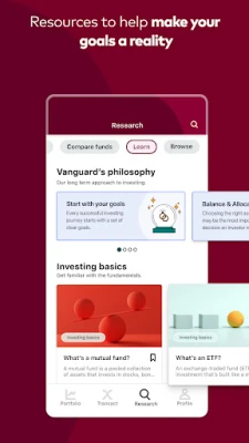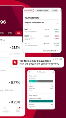 Meet the new Vanguard app. We’ve updated and refined our features to make it easier than ever to invest from your mobile device. Along with our sleek new look, you can also log in to your accounts with Fingerprint ID. We’ll be rolling out new updates every few weeks, but if there’s something you want us to build, you can let us know in our Support tab.